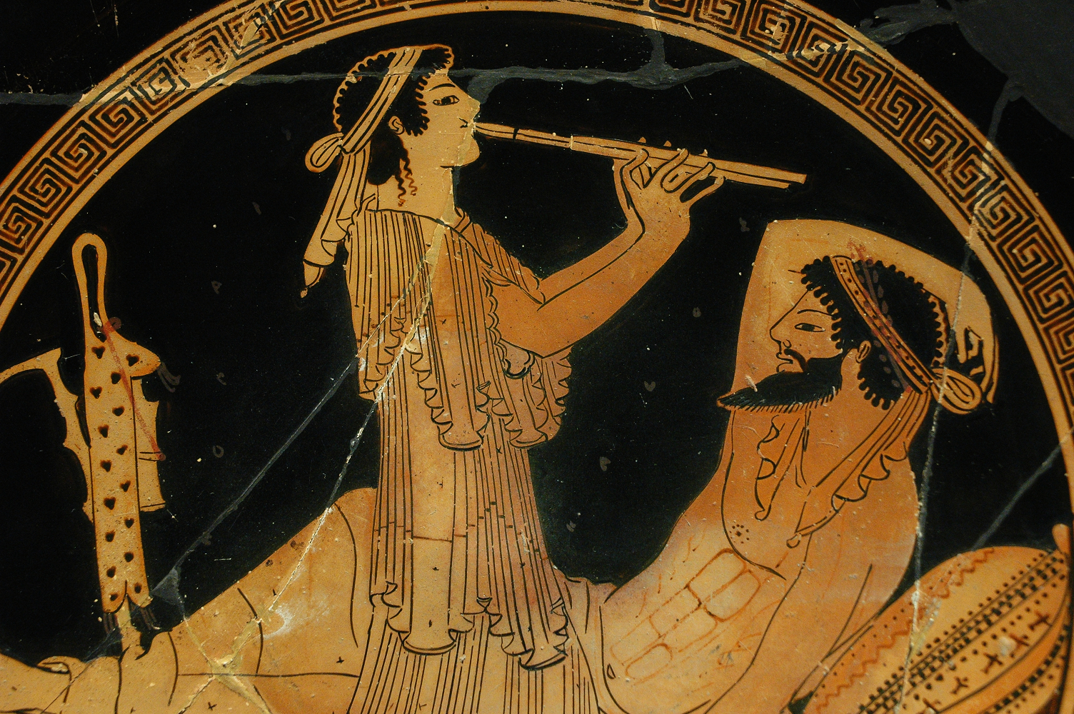 Rome_pipes As you might notice in the picture above, it was actually fairly common for individuals to play two pipes at the same time. While this isn’t a common feature of Western music (except for bagpipes), it is often seen in music around the world. One pipe plays a “drone” pitch, and the other pipe plays the melody. Here’s some examples with very different sound qualities: